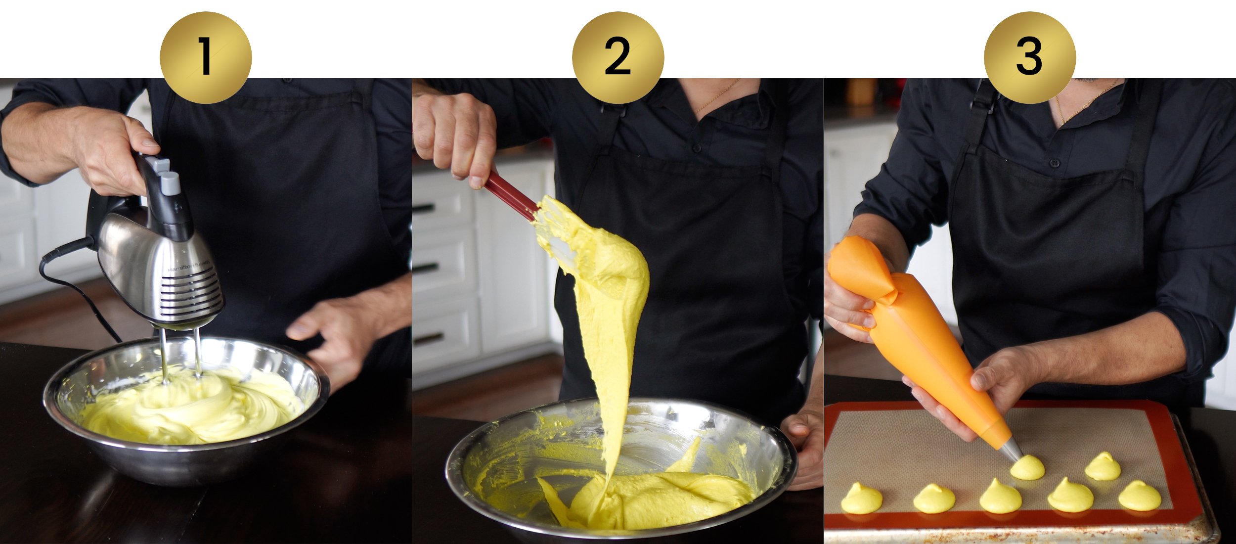 I’ll guide you step by step to achieve the perfect batter, with chef-tested recipes. You’ll learn which ingredients to choose, how to mix them properly, when to stop folding, how to pipe with precision, how to bake them and and how to avoid the most common mistakes.